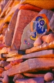 翻过一道梁子后,眼前突然展现出一片广袤的平地,远远的就看见松格玛尼石经城堆砌在那里。总算到啦!松格玛尼石经城其实也是个“另类“的玛尼堆,或者说是个巨型的玛尼堆。它远看就像个古代的军事要塞,长宽约50多米,高度俺估计超过10米以上。由无数的石板砌成。同样,每一块石板都布满经文或佛教石刻画。据说,因为草场泥地松软,还有一半多陷到地下去了,和巴格玛尼墙一样,它依然被佛教徒们继续在加高,同时也在继续下沉。传说松格玛尼石经城是藏族英雄格萨尔王为了纪念手下战死的弟兄们而建立的一个小玛尼堆,很快就成了一个圣地。后人们纷纷来此朝拜,也继续添砖加瓦,最后形成了巨大的玛尼城。有考证说从最下面发掘出的石板上,刻的不是藏文经书而是梵文的。这有力的证明了松格玛尼石经城诞生于佛教进入西藏之初。从石经城一边有个小门可以进入石经城里面,入口很窄,仅能容下一身。里面如同迷宫一般,狭窄的通道弯来拐去,让人摸不着头脑。我就不幸在里面暂时迷路约一刻钟,最后狼狈的爬过一个石堆才找到出口。在里面呆着,万籁寂静,太阳火辣辣的立在头顶。偶有几只秃鹫飞过,哇哇的叫2声,令人感觉毛骨悚然。我背着NF1,仔细看着石刻,很多石刻文字工整,刻刀刚劲有力决不拖泥带水。尤其一些石刻画,记述着一些佛教传统故事,线条简洁,彩色画是用矿物盐绘制的,历经岁月而不褪变。我居然在一片石板上看见了西游记故事...就像连环画一样。时间比较紧,还得赶路,没来得及在石经城里再顿悟出什么。我们匆匆撤退了。当晚10点过到达玛尼干戈,至此,石渠之行也算结束了。